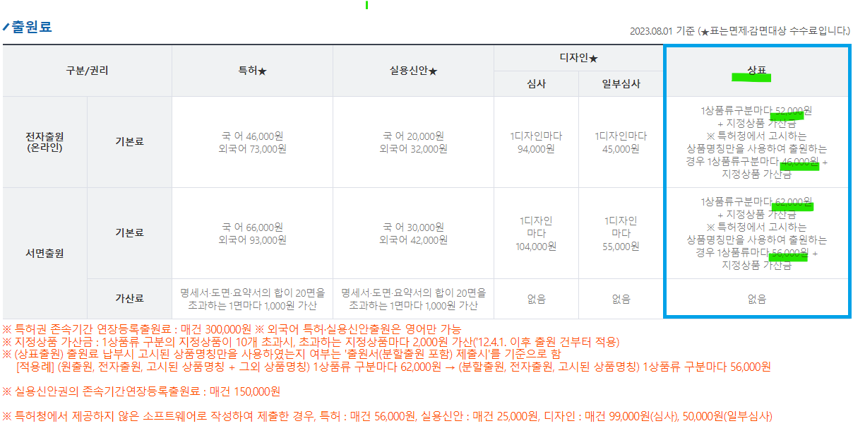 - 상표등록료(특허청에 상표등록을 신청하는 데 필요한 수수료)